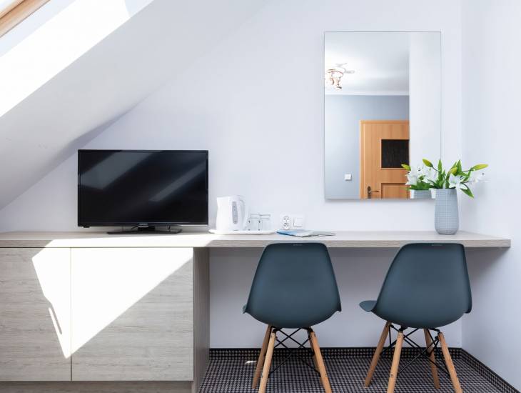 Pokoje i apartamenty wyposażone w telewizor, internet bezprzewpdowy, czajnik, suszarkę, sprzęt plażowy